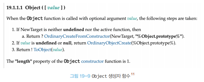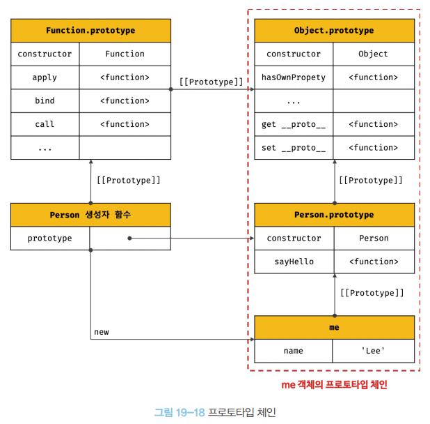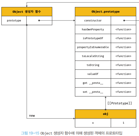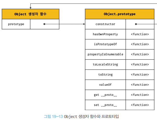 Object.prototype을 프로토타입 체인의 종점(end of prototype chain)이라한다. Object.prototype의 프로토타입, 즉 [[Prototype]] 내부 슬롯의 값은 null이다.