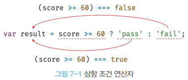 반면에 삼항 조건 연산자 표현식은 값으로 평가할 수 있는 표현식인 문이다. 따라서 삼항 조건 연산자 표현식은 값처럼 다른 표현식의 일부가 될 수 있어 매우 유용하다.