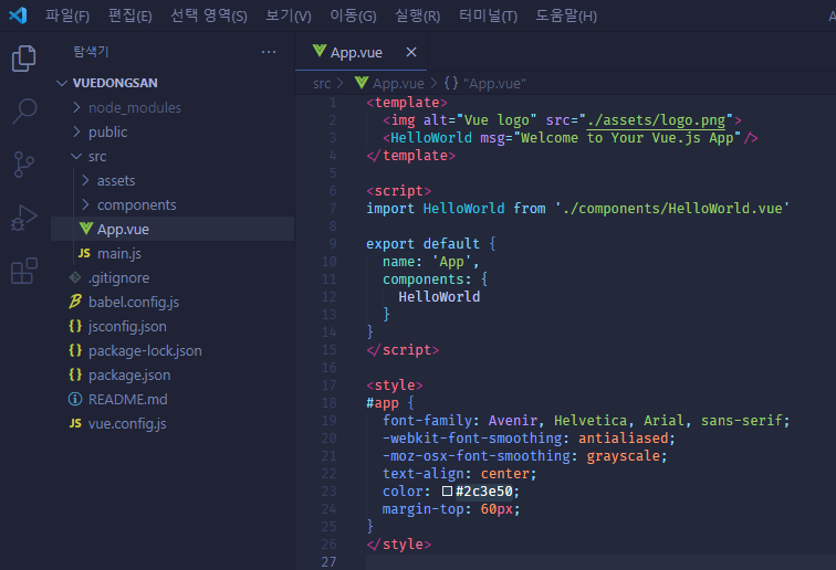 src/App.vue에 코드를 짜면된다. (메인페이지)